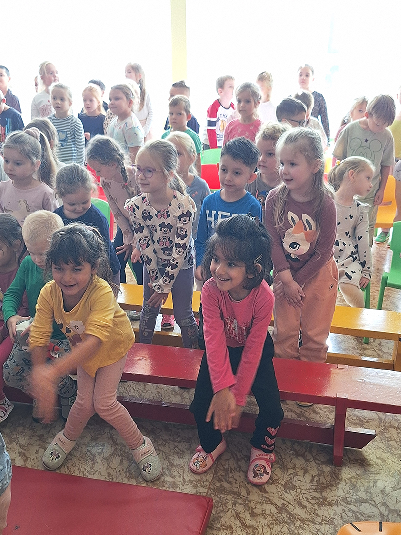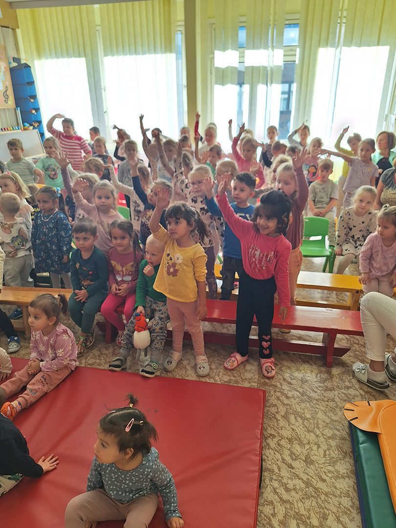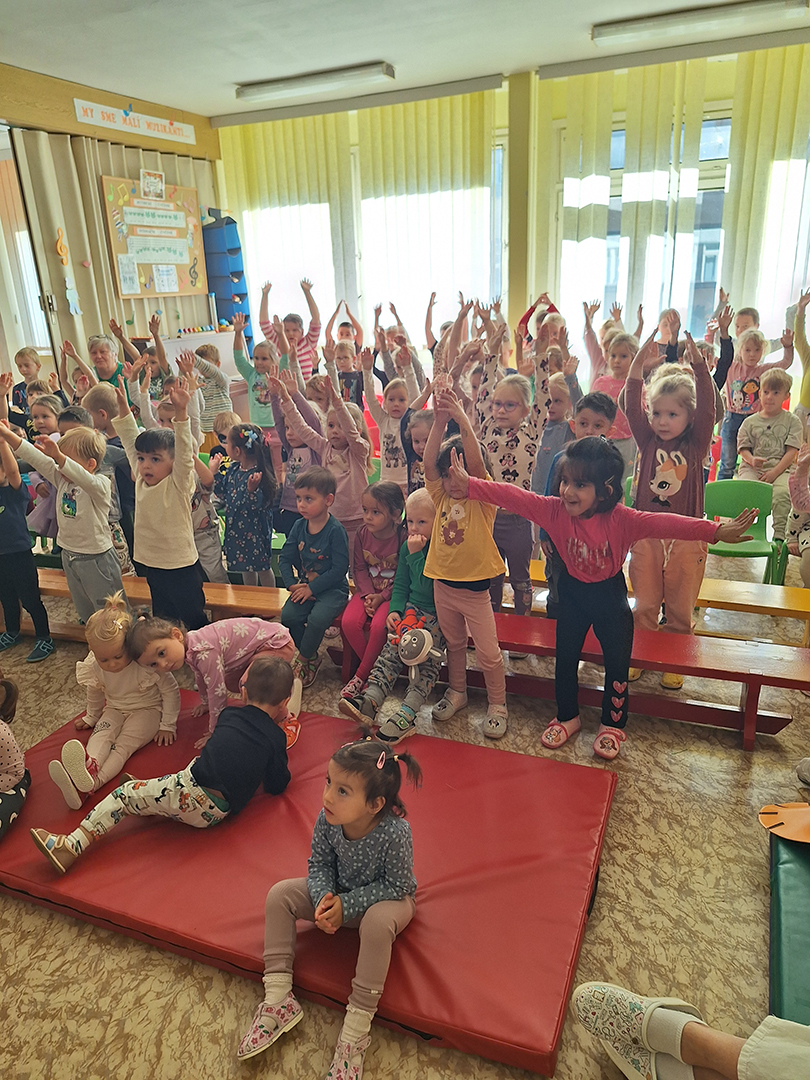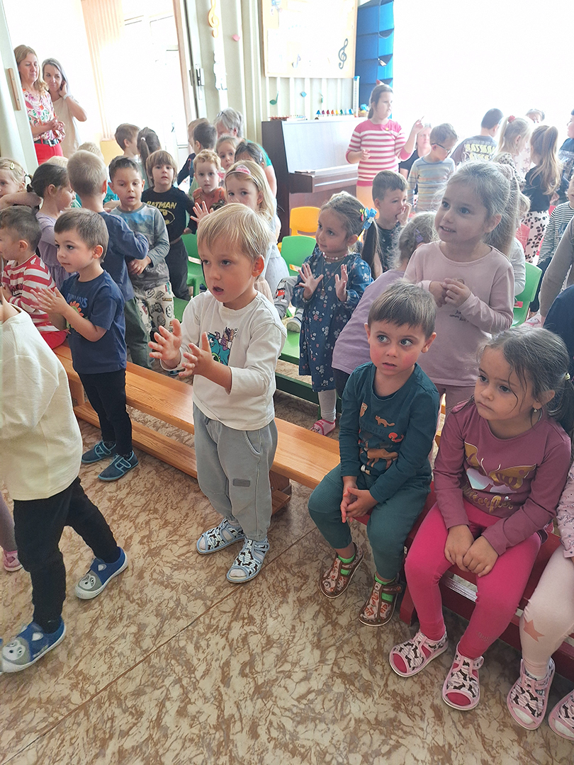 Deti napodobňovali zvieratká, čo sa im veľmi páčilo, vedeli reagovať na hudbu a hudobné otázky, boli aktívne a veselé. Rôznymi aktivitami sa u detí rozvíjalo estetické a hudobné cítenie. Všetci sme mali veľmi pekný kultúrny zážitok, za ktorý ďakujeme!