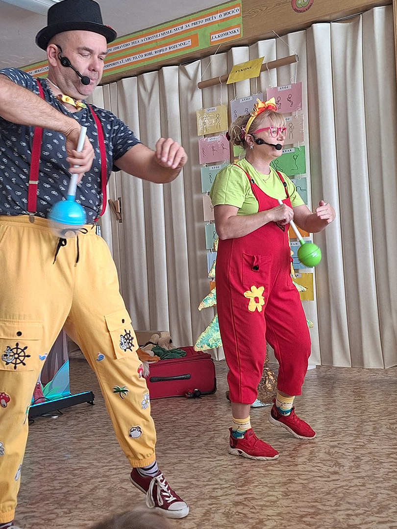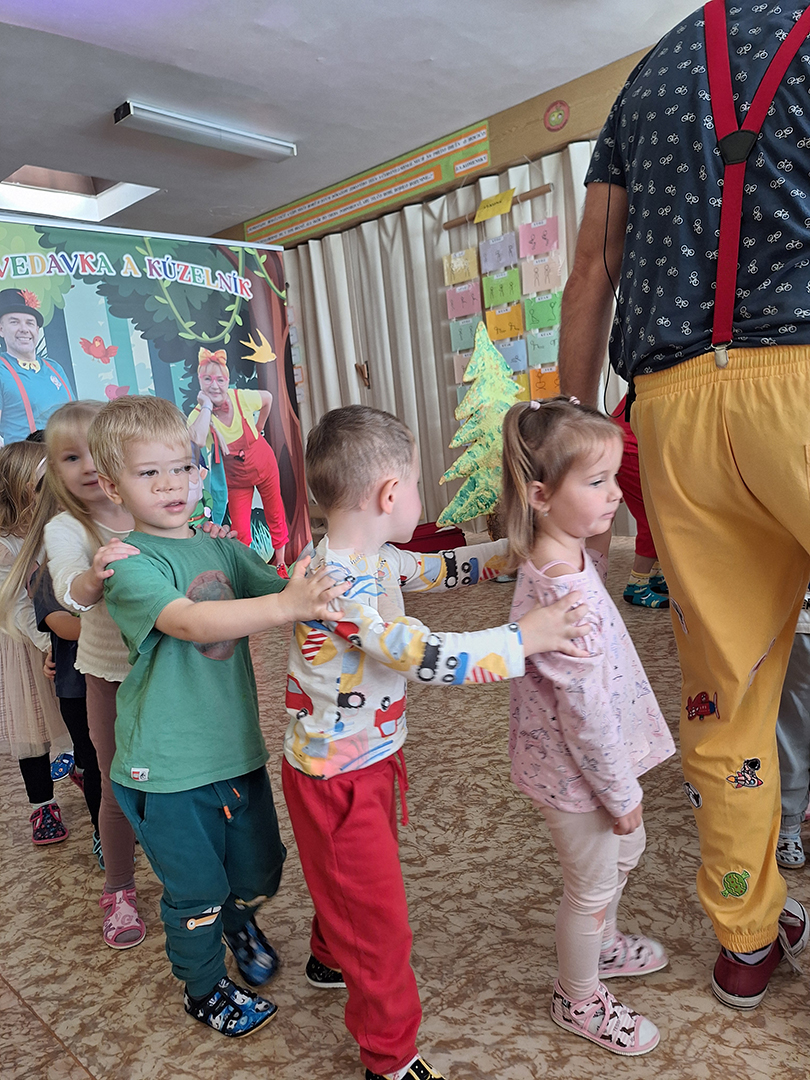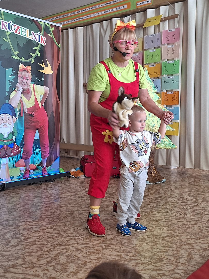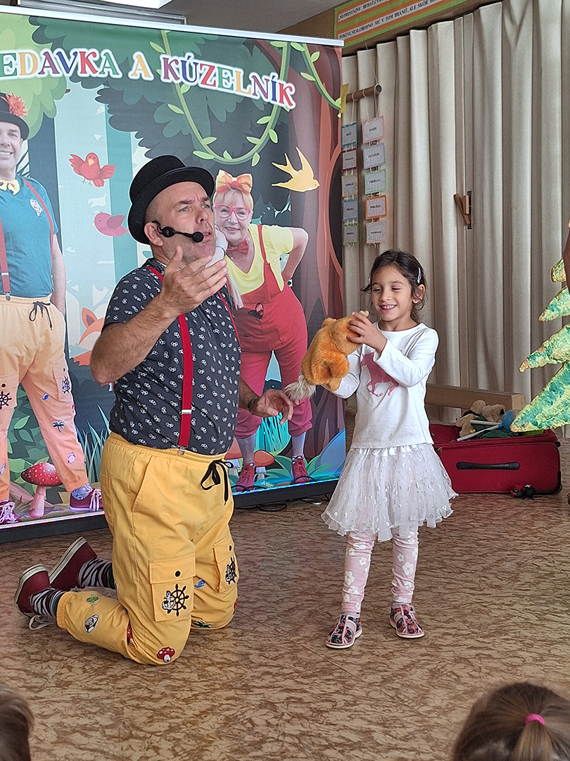 Dňa 03. 10. 2025 sme mali veselý hudobný koncert v podaní známych interpretov: "ZVEDAVKA A KÚZELNÍK", ktorí pobavili deti našej MŠ interaktívnym predstavením: HÁDANKY Z LESA.