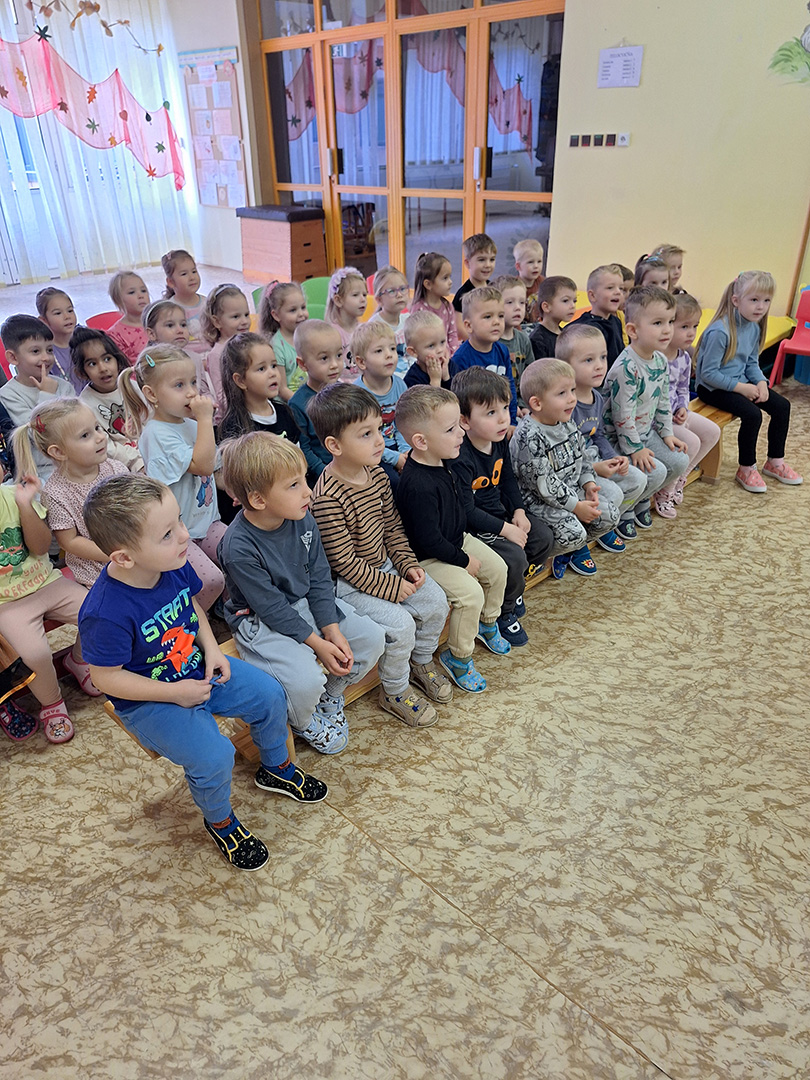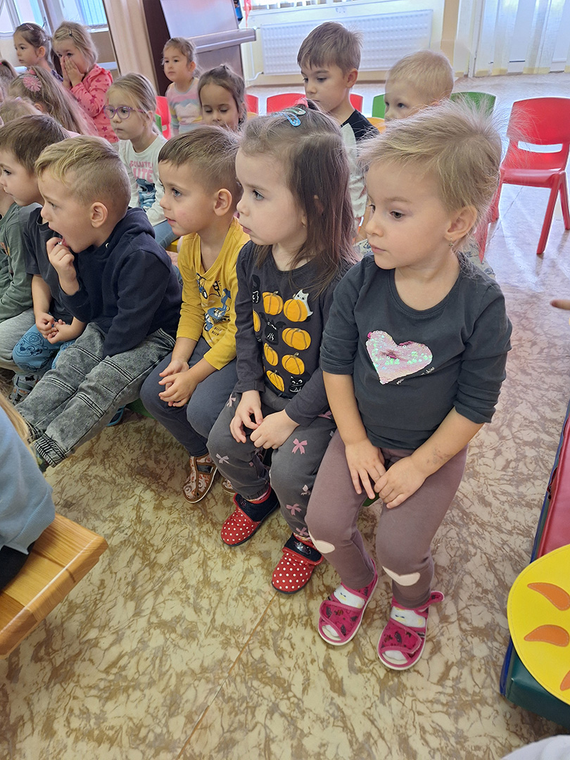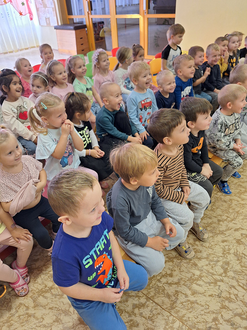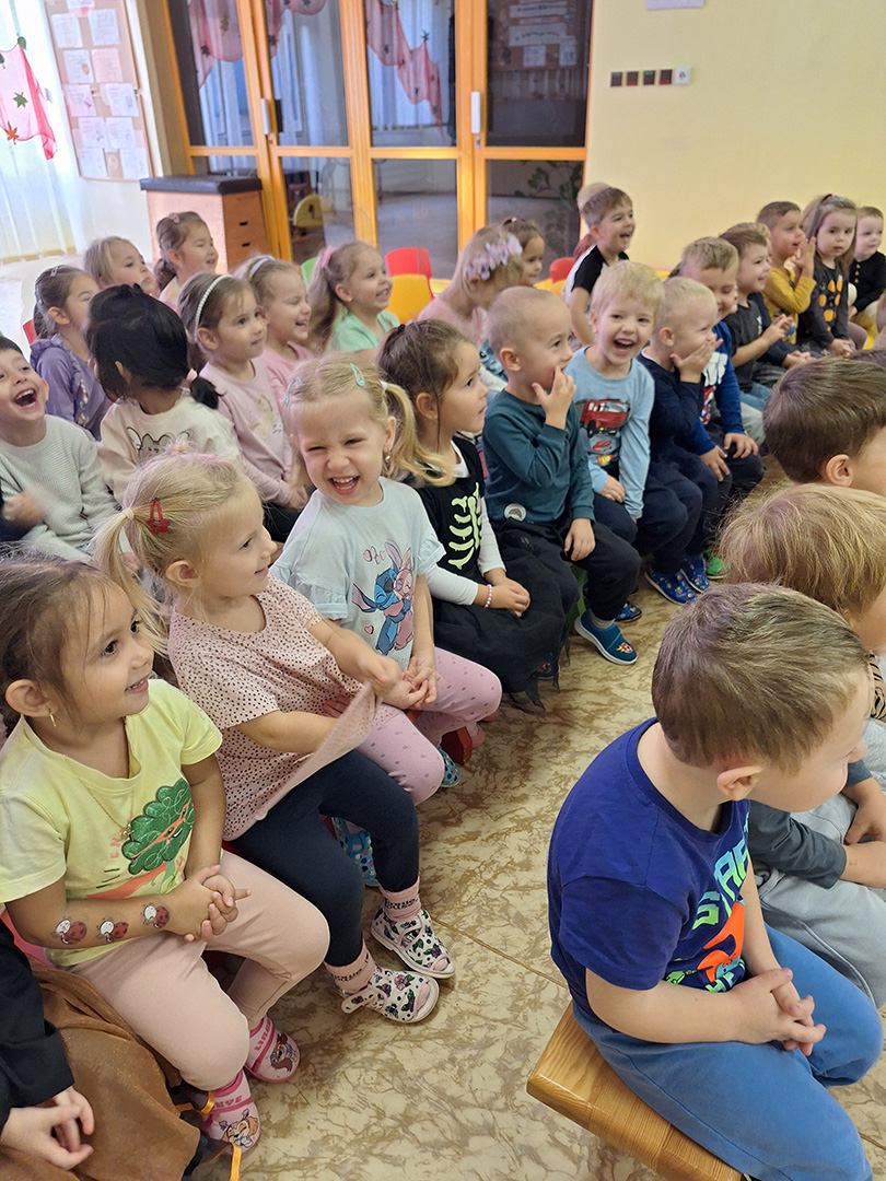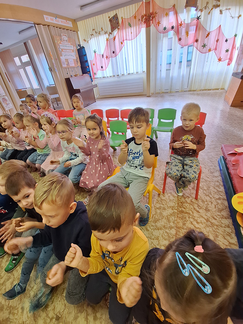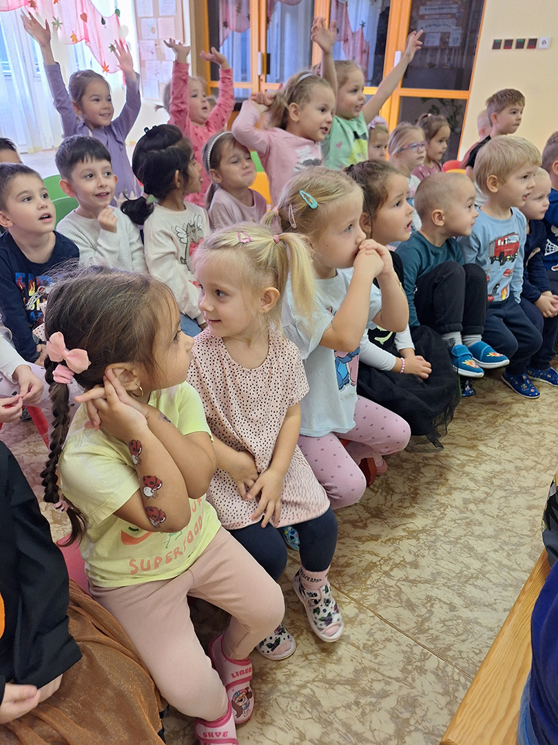 Dňa 15. 10. 2025 sme mali pre naše deti Divadlo Svetielko: "JESEŇ SPIEVA". Veselé a zaujímavé zvieratká, ktoré sa pripravujú na zimný spánok, ale aj odlietajú na jeseň do teplých krajín sa prihovárali deťom slovom, piesňou, aj pohybom.