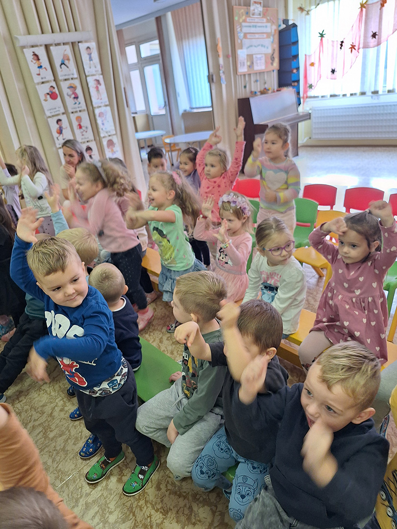 Keďže nás je veľa, divadlo si pozreli najskôr mladšie deti a zvlášť staršie deti. Pohybovo a spevom vedeli vyjadriť typické znaky, zvuky a vlastnosti zvieratiek.