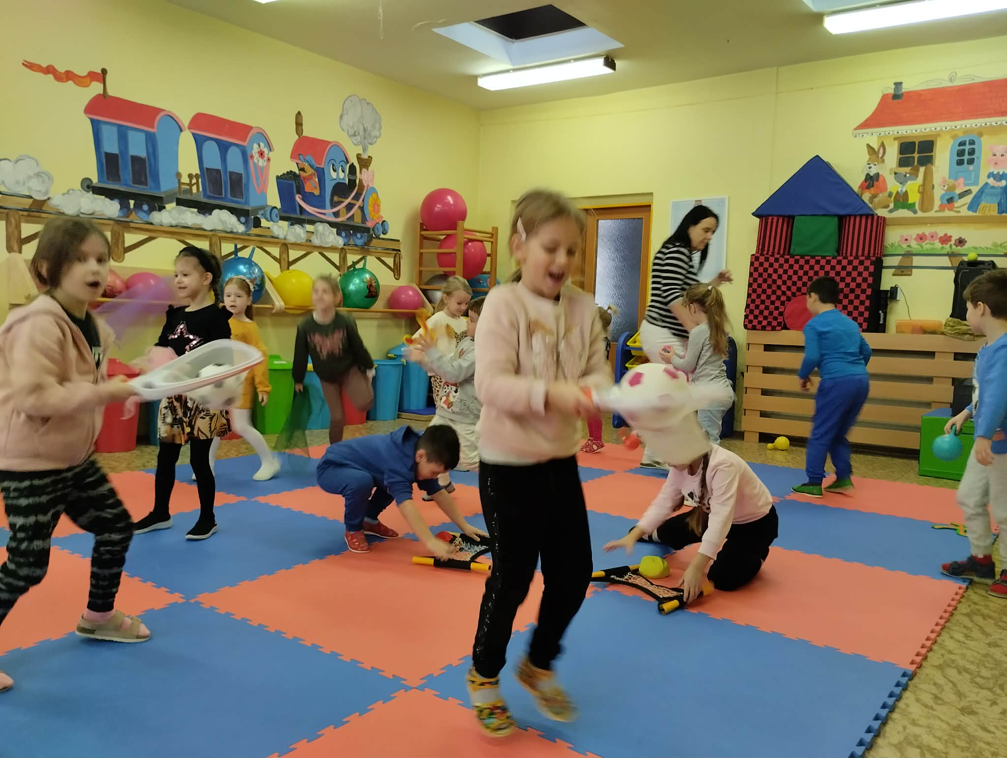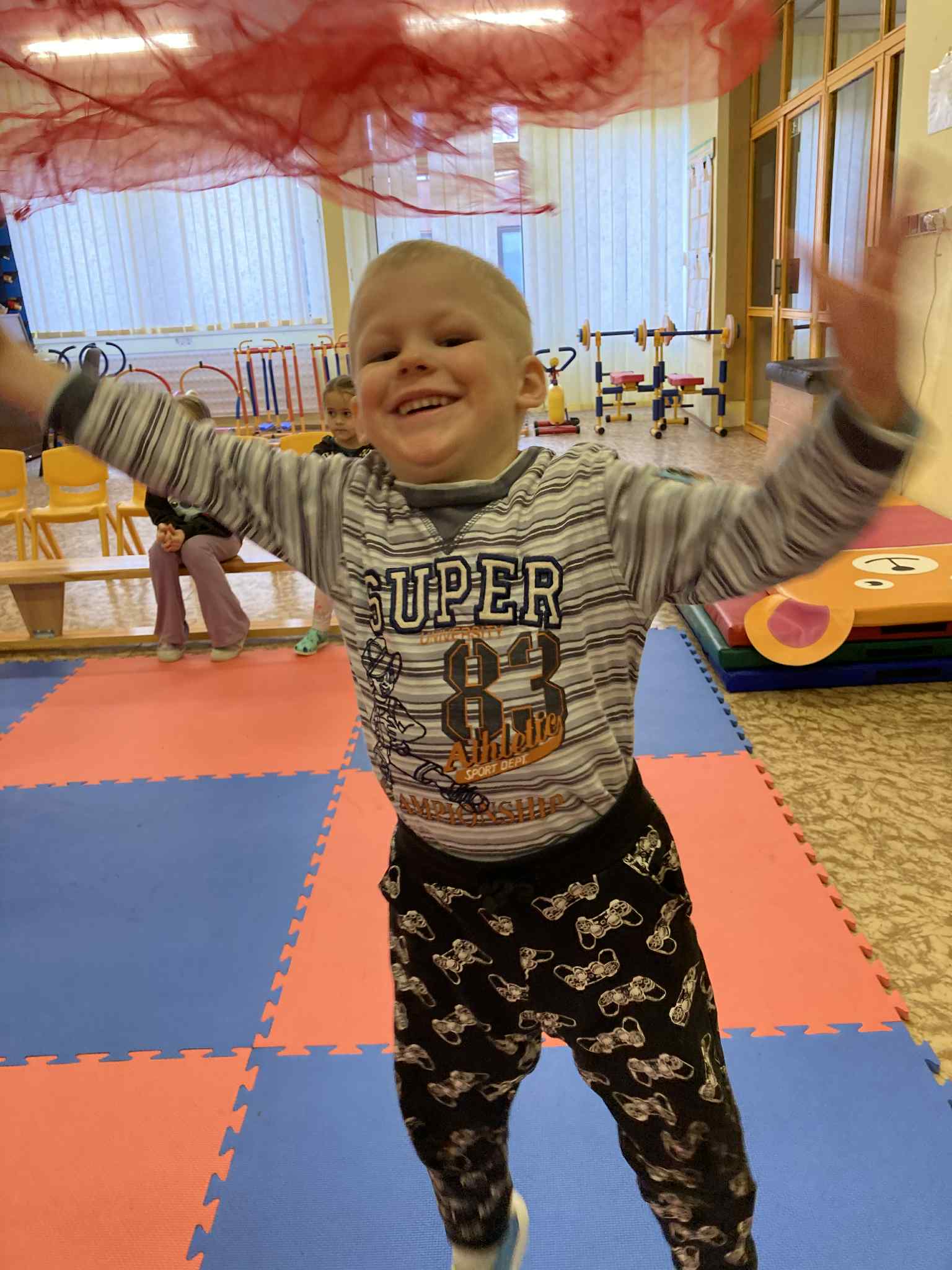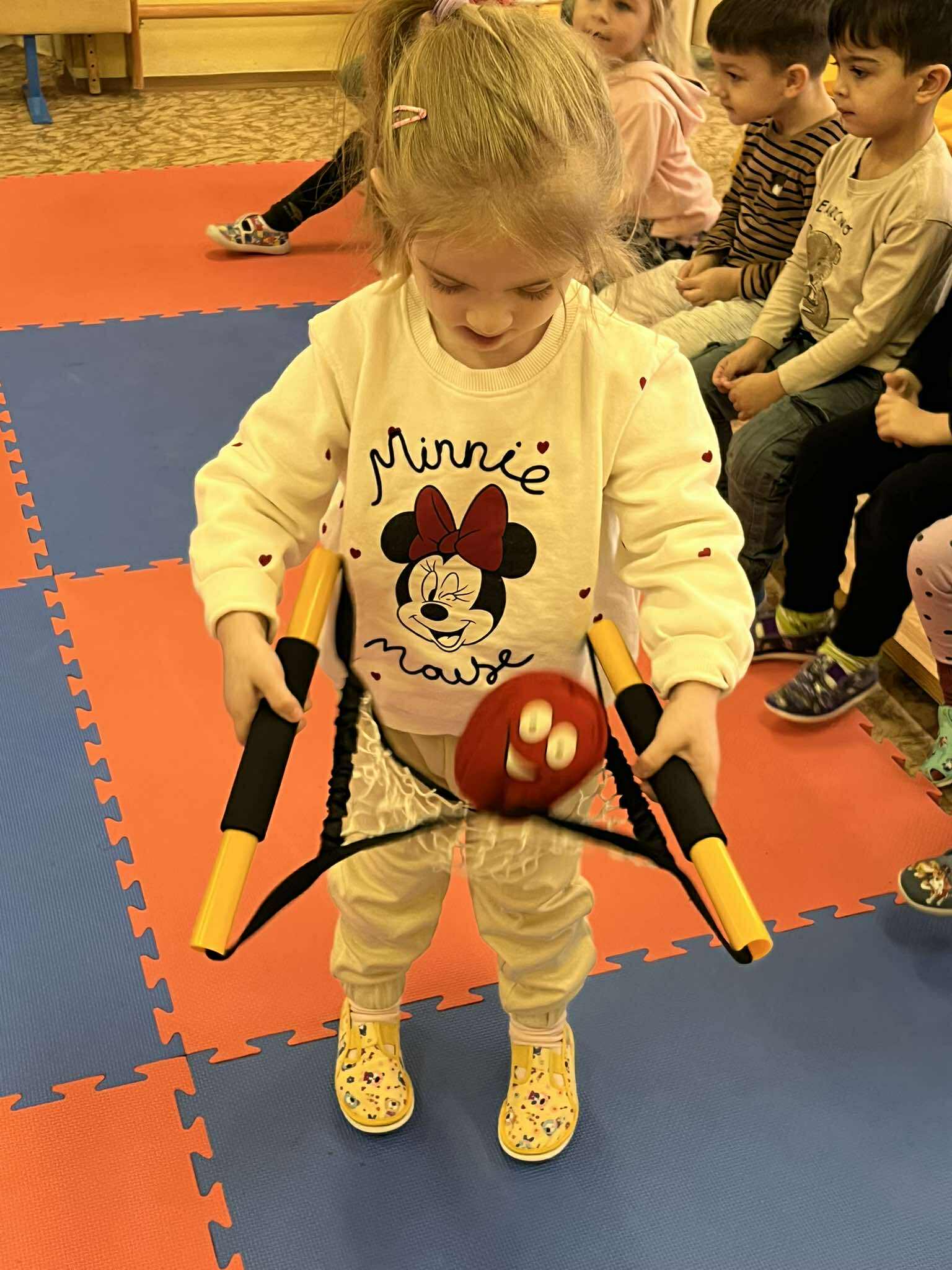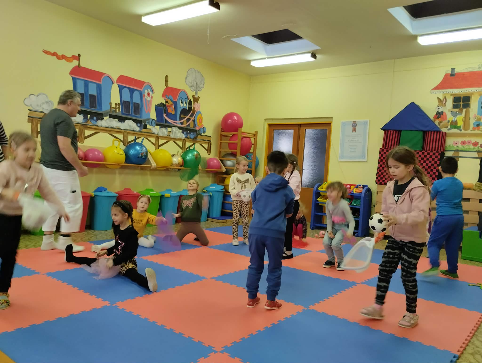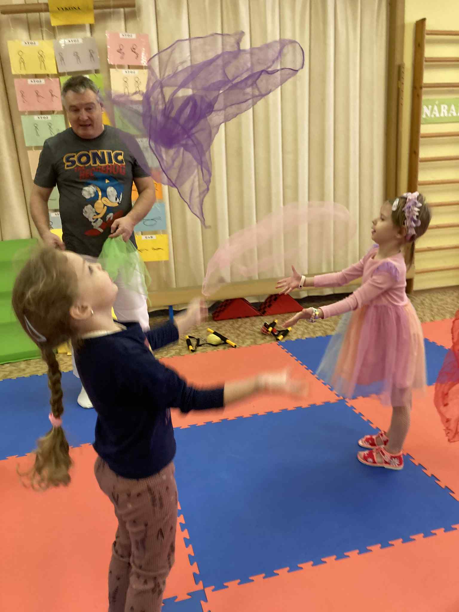 Keďže sme na vystúpení boli každá trieda zvlášť, všetky deti mali možnosť vystriedať sa v rôznych aktivitách. Deti mali dobrú a veselú náladu a radosť zo všetkých žonglérskych aktivít.