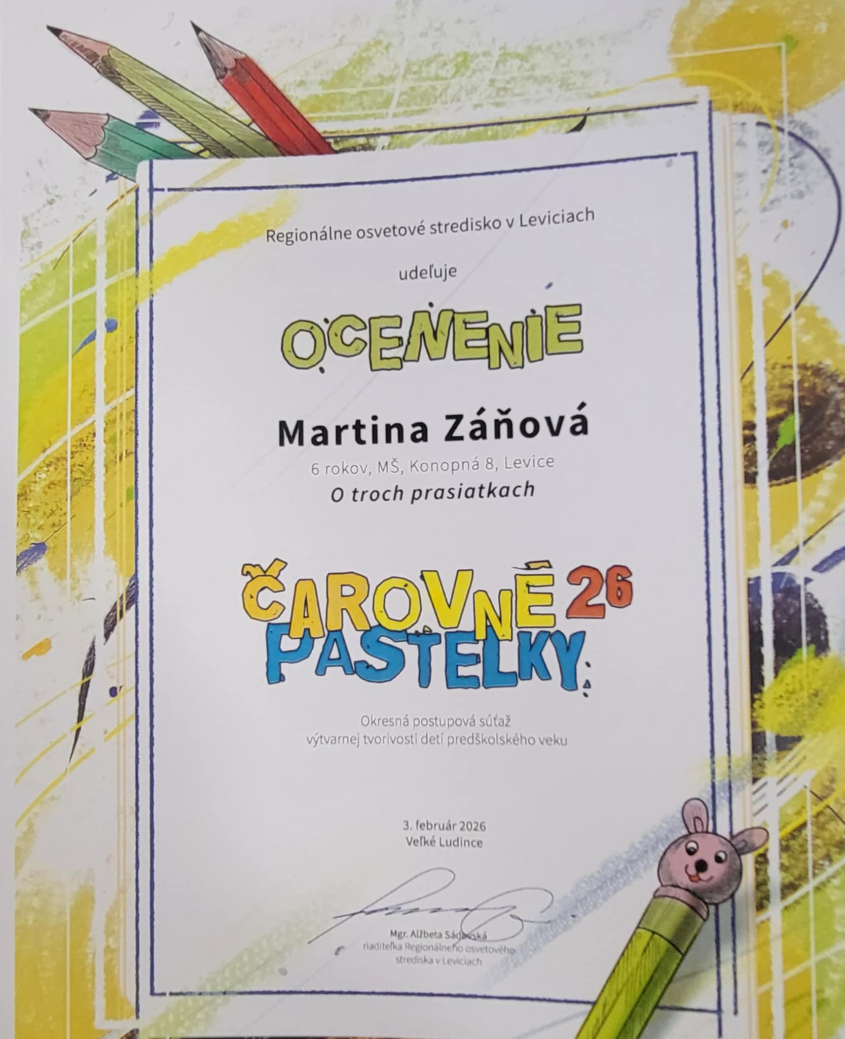 Dňa 3. februára 2026 sa vo Veľkých Ludinciach konalo slávnostné vyhodnotenie okresnej postupovej súťaže výtvarnej tvorivosti detí predškolského veku Čarovné pastelky 2026, spojené s vernisážou detských prác a odovzdávaním ocenení mladým autorom a autorkám z materských škôl.