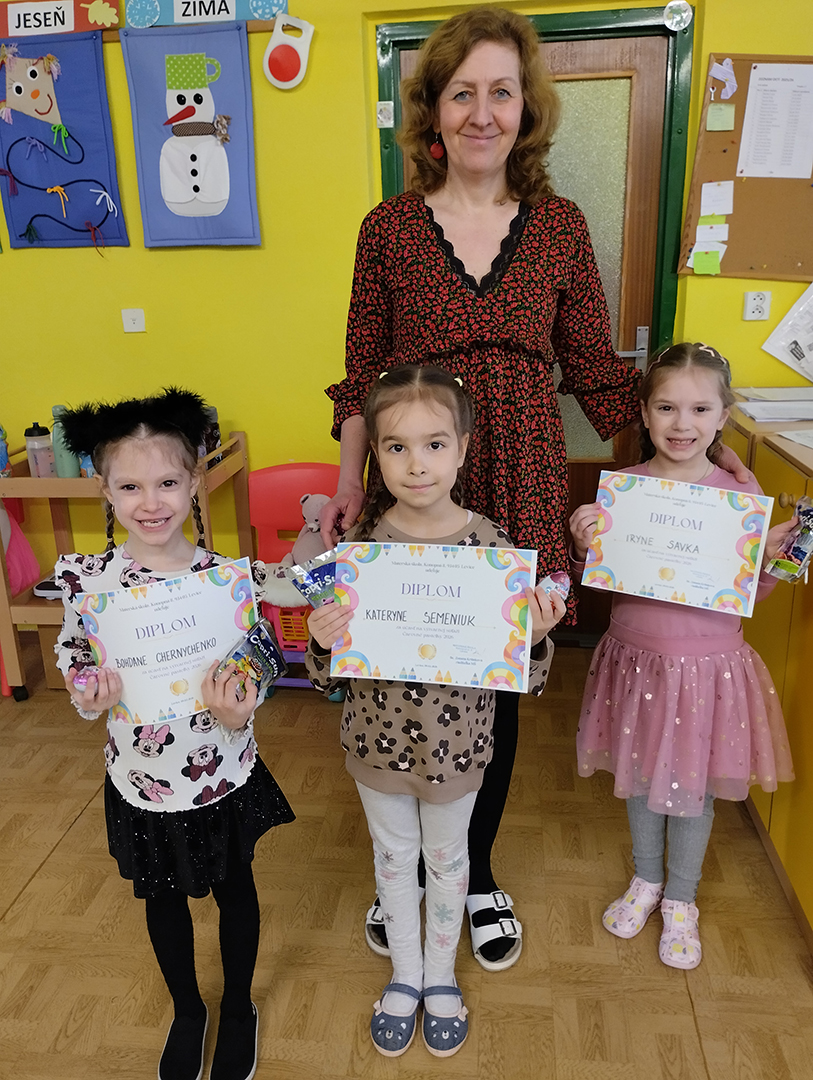 Do súťaže sa zapojili aj deti z našej MŠ z margarétkovej a mačiatkovej triedy, ktoré svojimi prácami ukázali veľkú fantáziu a kreativitu. Ocenené autorky boli Lívia Števíková, Martina Záňová. Výtvarnej súťaže sa zúčastnili Nela Rohaľová, Katarína Pavlovičová, Tomáš Magula, Hugo Husár, Iryna Savka, Bohdana Chernychenko, Kateryna Semeniuk.