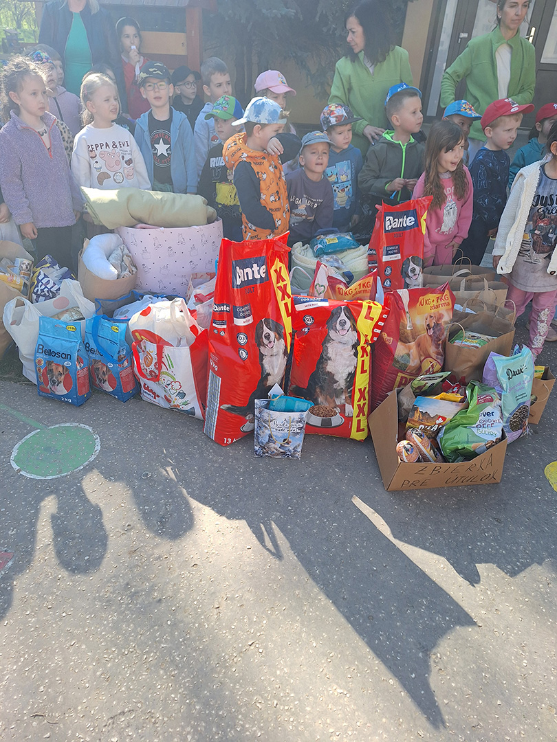Dňa 16. 4. 2026 sme mali v MŠ vzácnu návštevu, prišla ku nám teta Janka z útulku, spolu so psíkmi Noelom a Eimie, aby si prevzali od nás dobrovoľnú zbierku, ktorú sme zorganizovali v marci 2025. Bc. Zuzana Kršiaková, riaditeľka MŠ poďakovala deťom, rodičom, aj zamestnancom MŠ a odovzdala mnoho darov.